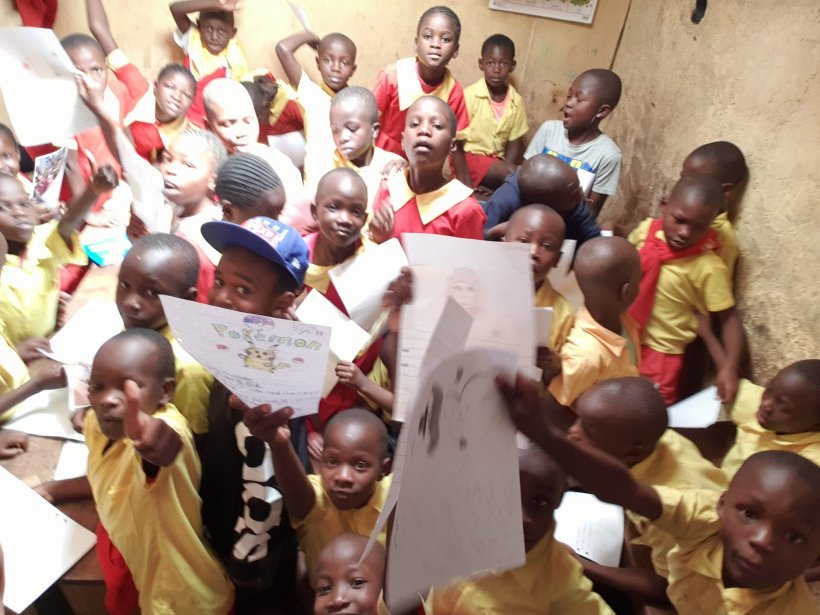 Vi delar ut breven och barnen läser. De trängs i bänkarna och skickar breven mellan varandra. När vi också delar ut bilder från Movitz skola och klassrum blir det nästan slagsmål om vem som ska ha bilderna. De står upp, sträcker sig och pratar glatt.