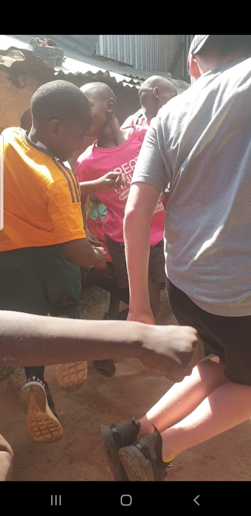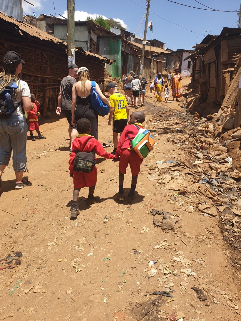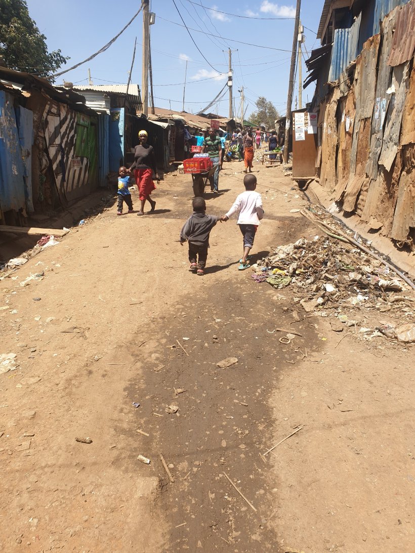 Att få träffa barnen på Oloo school var kanske huvudsyftet med denna resan. Det var bland annat därför vi valde att lägga två hela flygdagar under en dryg veckas tid för att få tillbringa cirka 7 dagar i Nairobi. Redo för alla nya möten står vi vid den obefintliga busshållplatsen och väntar på att rätt buss ska dyka upp. Vi syns, sticker ut. I mångas ögon är vi en massa ”muzungo” (viting) som har obegränsade mängder av pengar. Ett barn i en grön hoodtröja och flipflop på händerna kommer framkrypande till oss. Han ler vant och sträcker fram en hand mot mig. En till pojke dyker upp. Han haltar. Hans fot är dysfunktionell och pekar utåt vilket får benet att hamna i en onaturlig position. Även en arm är vriden. Mina tankar går till barnets mamma och hennes graviditet. Det mest troliga är att hon missbrukat under hans tid i magen. Under hans nämnvärt höga panna sitter två vackra ögon som skelar lite. Han ler snett.