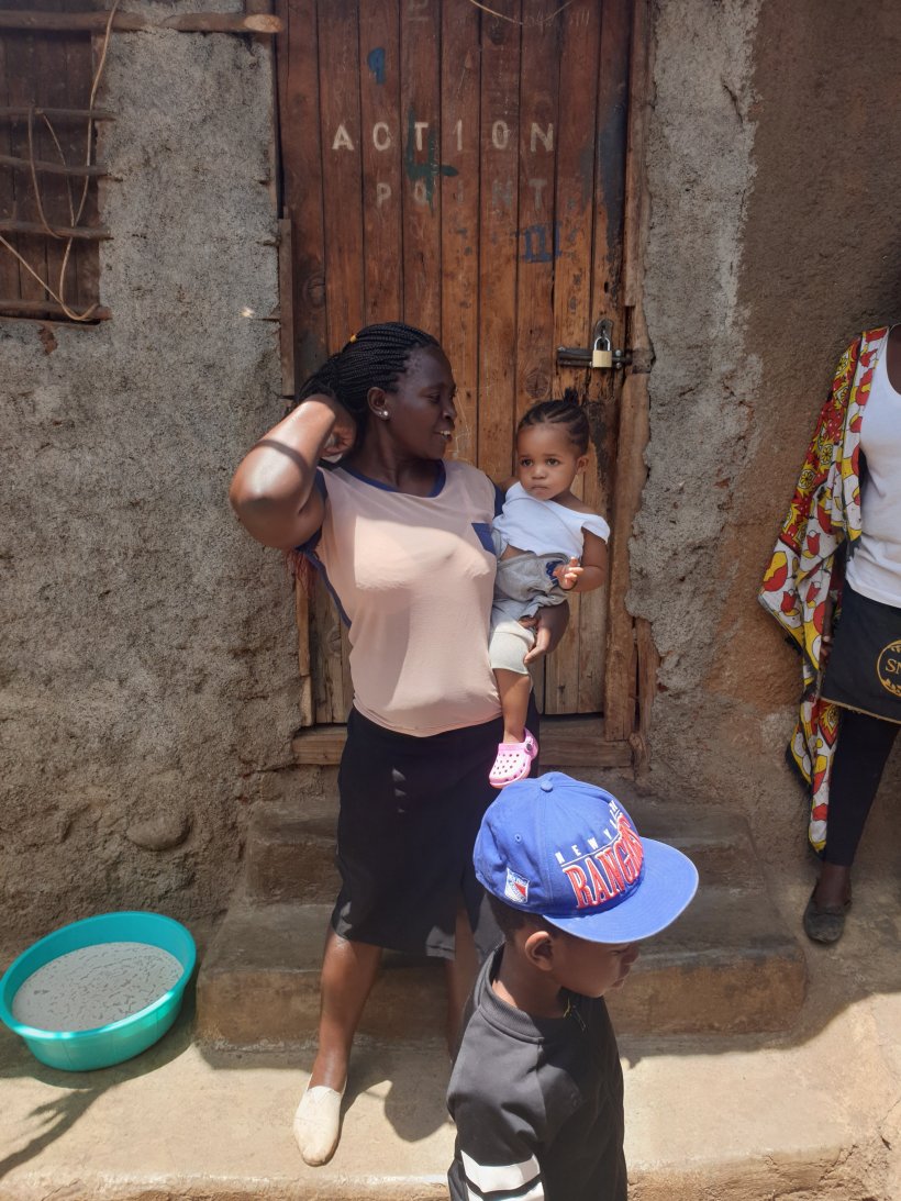 Efter besöket på Oloo fortsätter vi hem till Ben och Judiths hem som bara ligger ett stenkast från skolan. Det öppnas med en plåtdörr och inuti huset är väggarna byggda av betong, vilket är det mest stabila av tre sätt att bygga hus på i Kibera. Här bor familjen Oloo som består av Judith och hennes syskon med familjer, samt syskonens äldre föräldrar. Ben förklarar att de lägger madrasser på golvet och alla får plats på soffan och madrasserna. Föräldrarna sover i det lilla rummet innanför skynket.