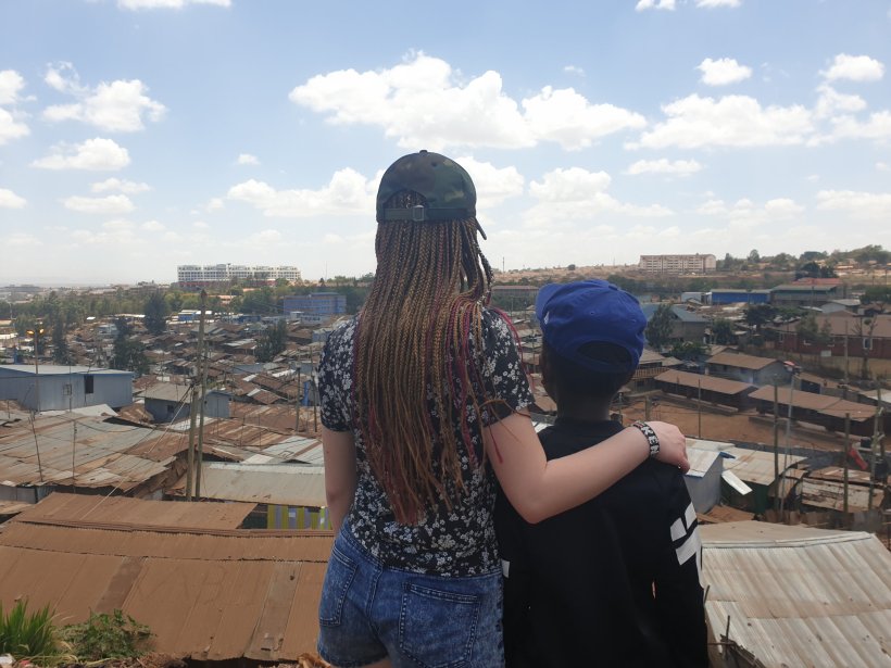 Promenaden tillbaka är mäktig på något sätt. Jag minns första gången jag besökte skolan och var så matt av alla intryck att jag bara önskade att någon kunde teleportera mig från slummen och hem till min trygga säng på Gemina court. Så kände jag inte den här gången. Hand i hand med min son, promenerar vi på järnvägen som delar Kibera i två områden och jag känner en glädje och en tacksamhet över att få uppleva allt detta. Tillsammans med Jessica känner man sig trygg i Kibera och nästan som en av dem. Fast ändå inte. Vi sticker ut. Det går inte att komma ifrån. Men i alla fall så nära som man komma. När vi kommer fram till en plats där man ser ut över alla Kiberas plåttak, stannar vi för att fota igen. Sonen ber mig lite snyggt att lägga ner telefonen.
