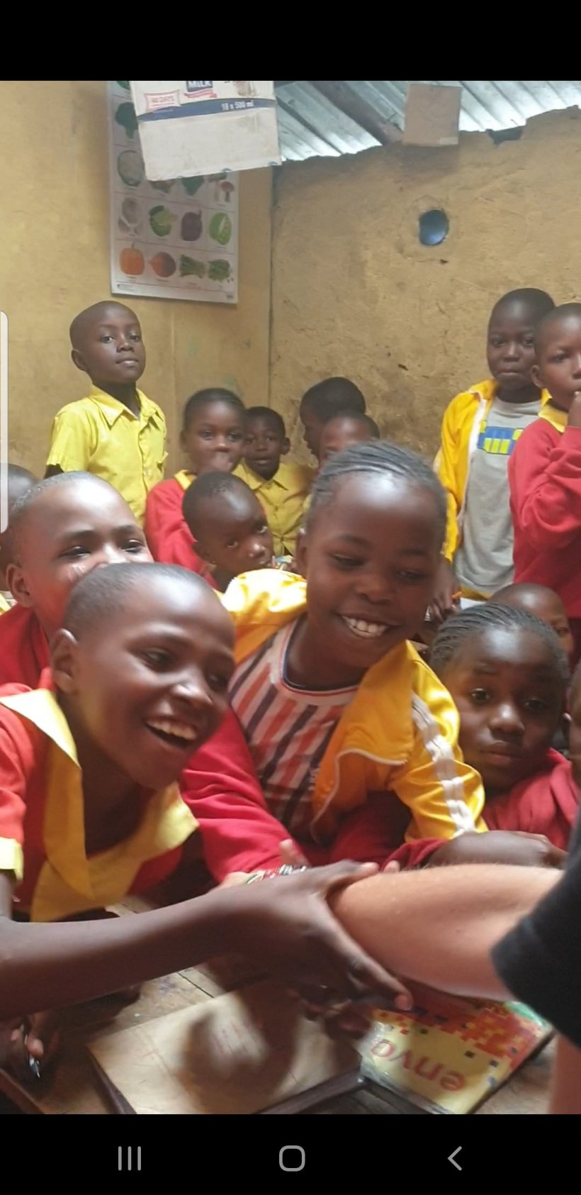 Några flickor grabbar tag i mig och ber mig vara med. Såklart jag är. En av dem heter Esther och är 11 år. Hon berättar att hon ska bli en advokat när hon blir stor. De andra flickorna drömmer om att bli en pilot och en bagare. Jag svarar att det är viktigt med drömmar. Att de har alla möjligheter i världen att bli vad de önskar.