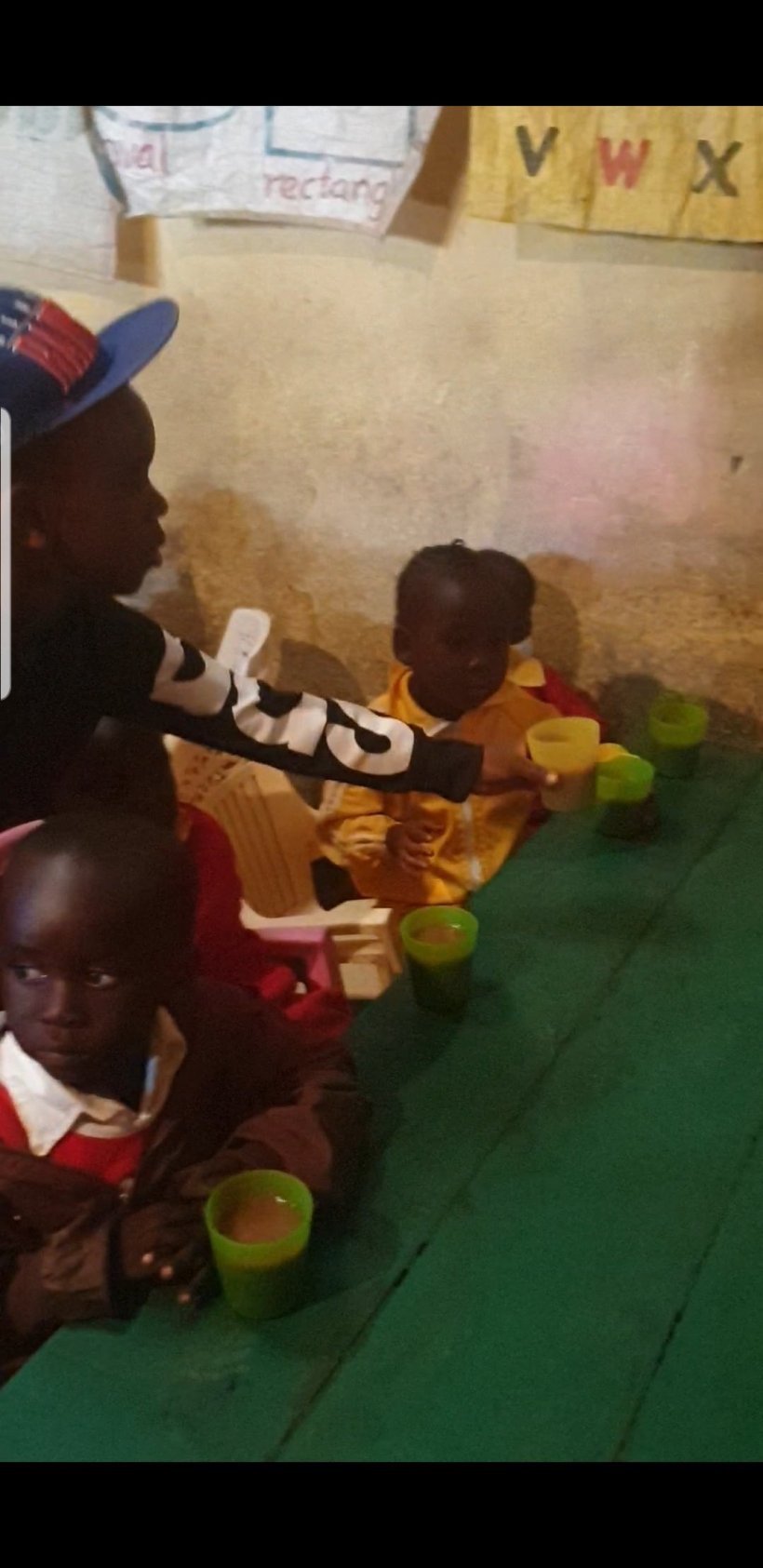 När alla fått mat äter barnen med god aptit. Tre gånger om dagen får barnen mat i skolan. Många skolor i Kibera har inget mål mat att erbjuda. Judith Oloo som startade skolan, säger ofta att mat är det enda som på riktigt betyder något. När det är skralt i skolkassan prioriterar hon alltid mat. Hon menar att om barnen är mätta så kan de sitta på det smutsiga betonggolvet och hon kan lära dem om ekvationer, fysiska lagar och Kenyas långa historia. Men om de får nya fina skolbänkar till ett klassrum med hungriga barn så kan de ändå inte lära sig ett smack.