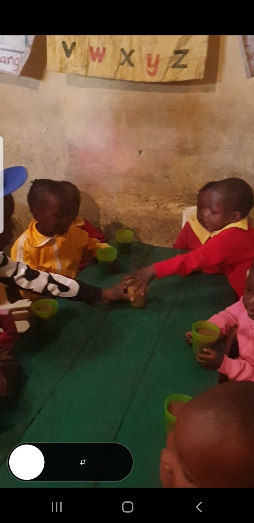 Movitz och hans kompisar får hjälpa till att servera frukost till barnen. En mugg med gröt och en mandazi. Det doftar oerhört gott om de friterade bakverken och barnen väntar snällt vid sina platser med maten framför sig. En liten pojke kan inte riktigt hålla sig och bryter en liten bit och smakar. Han ser på Jessica.