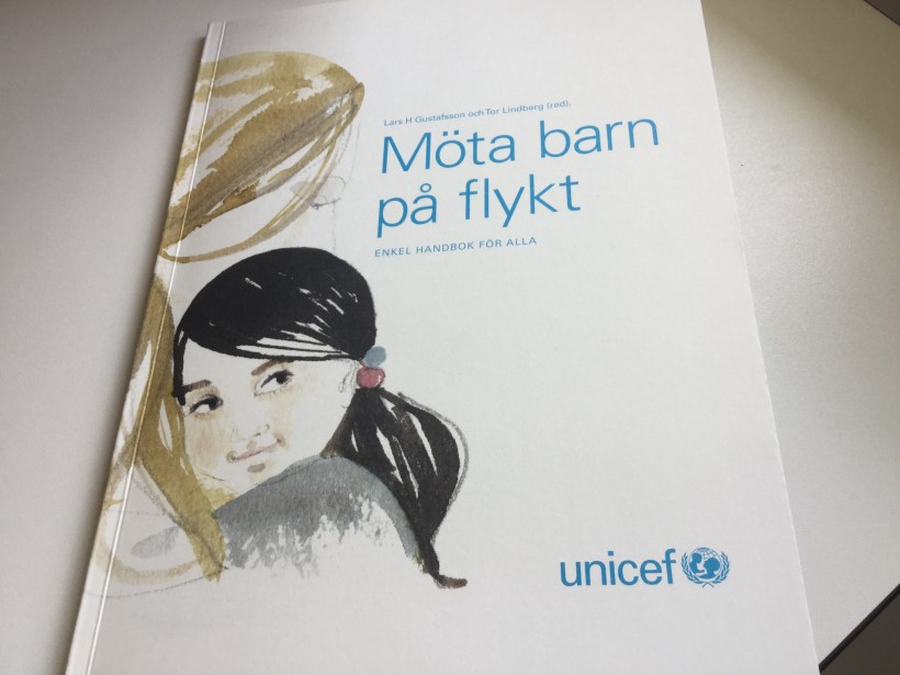 I häftet ”Möta barn på flykt” får vi åter igen ta del av hans tankar i mötet med barn, denna gången med barn som flytt från sitt land och sin trygghet. Det finns många specifika faktorer som blir viktiga om man jämför mötet med ett barn som inte flytt, som tex möjlighet till en tolk, kunna erbjuda terapi, sjukvård osv. Men det mesta av det som beskrivs är ett förhållningssätt som jag tänker gäller alla. Det första som står är vikten av att vara en medmänniska. Möta barnet med ett positivt intresse, ett leende och vara välkomnande. Vara nyfiken på vem man möter och ödmjuk inför det hen varit med om. Kunskap kring kultur och bakgrund kan vara till betydelse men behöver inte vara avgörande för att barnet ska känna sig sett och tryggt. Han menar att man ska leta efter ”friskhetsfaktorer”, det vill säga sådant som barnet är bärare av och mår gott av. Viktigt att aldrig pressa eller tvinga barnet att berätta något de inte vill berätta om. Gillar stycket extra mycket som handlar om tilltro till barnet. Om barnet berättar en historia först och sedan kommer med en helt ny version är det viktigt att inte döma eller tillrättavisa. Säg bara -Så spännande att du berättar det här nu. Det märks att vi börjar lära känna varandra ganska bra, du och jag.  Beställ boken här (boken och barnkonventionen kan beställas gratis)