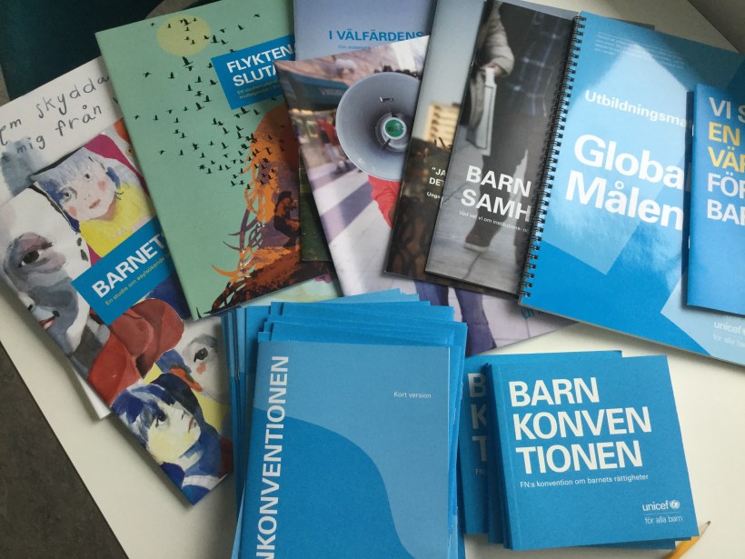 -Här i finns böcker, svarade jag. Böcker om barns rättigheter. Allt det som du och du och du har rätt att säga och göra här på förskolan och hemma. Barnen tittade lite konstigt på mig. Log lite fundersamt och sprang sedan i väg och fortsatte med sina lekar. Jag log också och tänkte att det här måste vi ändra på. Om ett år ska barnen själva slita upp lådan för att frossa i sina egna rättigheter 🙂