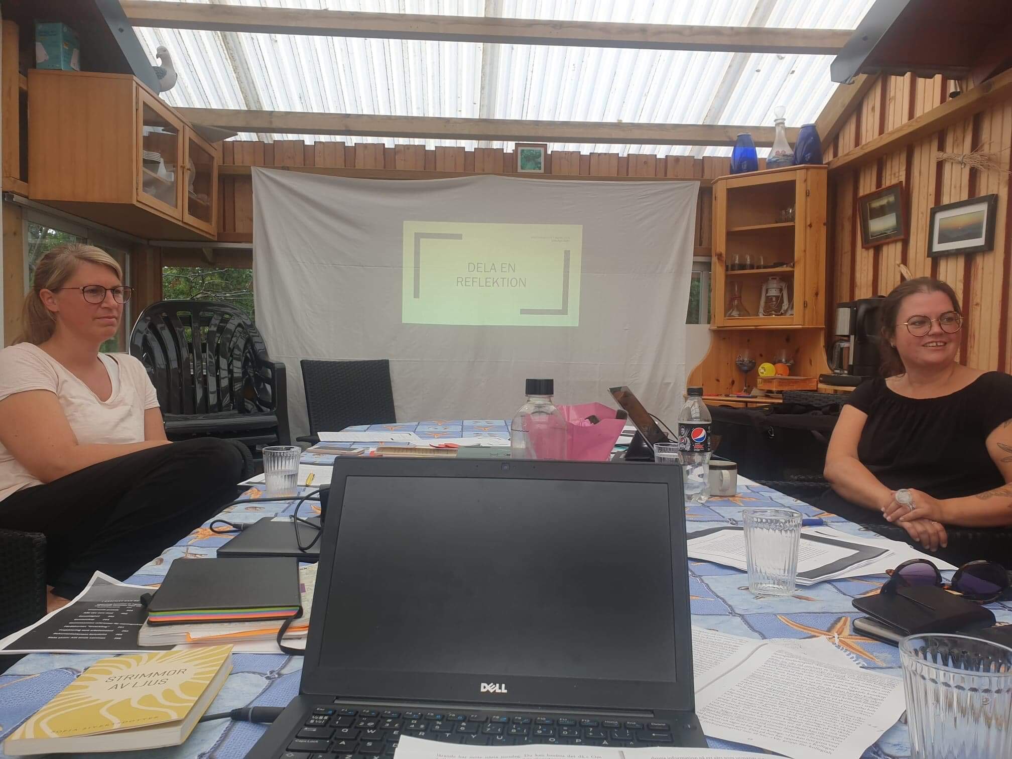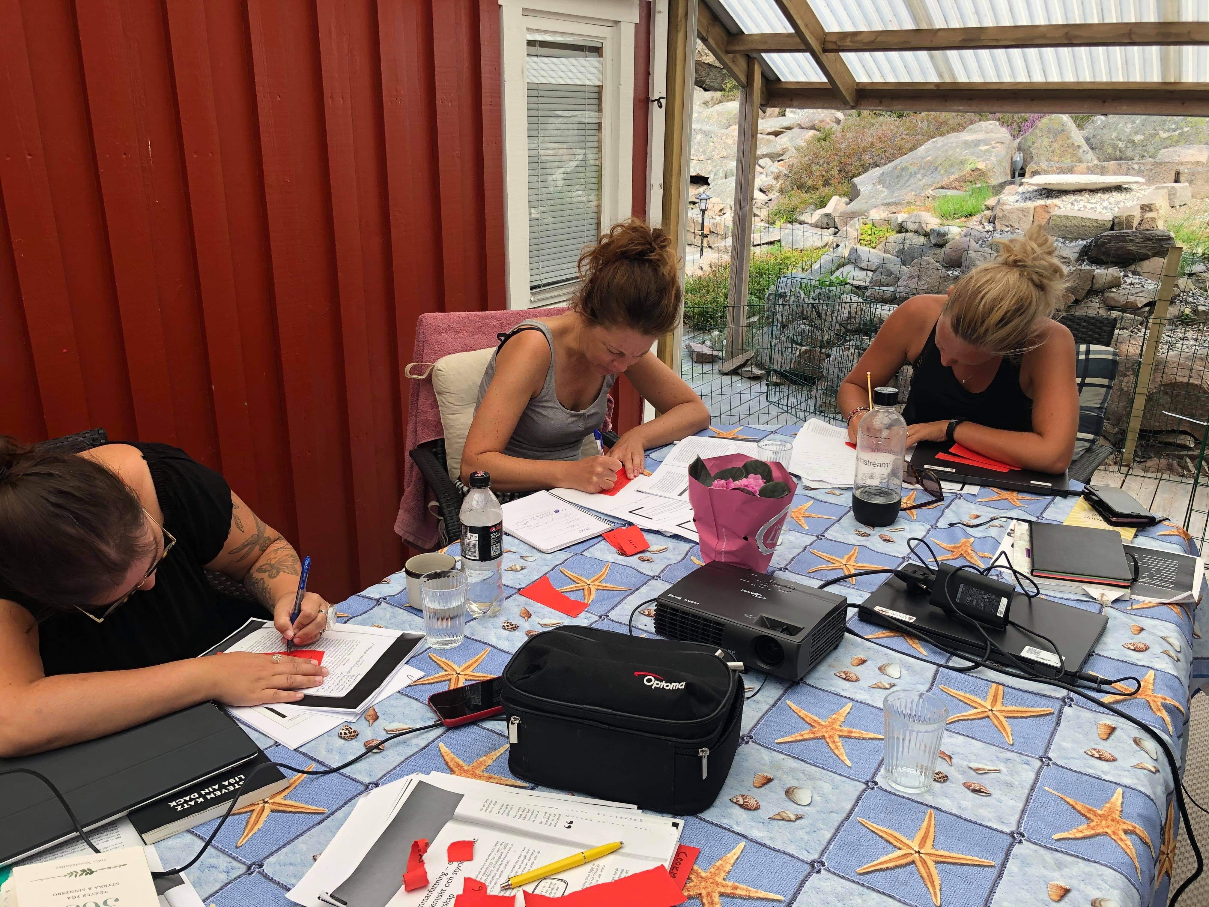 Människor som samlas på en plats vid havet för att utveckla sig sig själva och lära av varandra. Individer som är intresserade av andras sätt att tänka och vill tänka mer, förstå mer. Det finns en stark vilja av att växa både som person och tillsammans med andra. Går det det att beskriva vår lilla samling av nyfikna själar på det sättet. En brokig grupp som skiljer sig åt i mycket, men som också förenas gång på gång i sitt vetgiriga sätt att ständigt hitta nya frågor att ställa, nya möjliga vägar att tänka. Vi funderar, hur jobbar vi för att skapa gemenskap? Kan en gemenskap vara tilltalande och attraktiv. Är det överhuvudtaget en gemenskap om den är motsatsen? Många teorier finns med i våra ryggsäckar. Piaget, utvecklingspsykologi och människans behov av att förstå sin omvärld. Vi lägger till Vygotskij och den proximala zoonen, samt Descartes viktiga konstaterande, “Jag tänker, alltså finns jag”. Också intressant att förstå hur vi människor är ganska nöjda i vår trygga zoon där vi inte behöver lära oss så mycket mer. Vi letar efter det vi känner igen, nickar glatt när vi hör saker vi håller med i och pustar ut lite när vi hör saker vi redan vet och tänker att nu behöver vi i alla fall inte förändra det vi gör, utan kan fortsätta som vanligt.